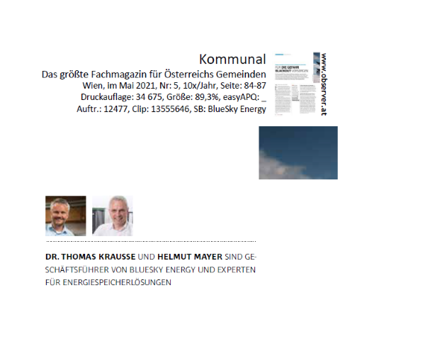 Österreichischer Fachzeitschrift berichtet gemeinsam mit den Geschäftsführern von BlueSky Energy